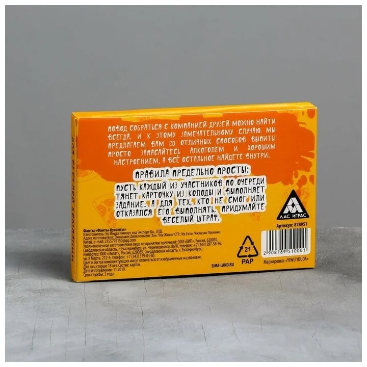 Купить игра для компании "фанты буханты" 20 карт от 100 руб. с доставкой до пункта выдачи в Сочи. Интернет магазин ДекаМаркет. Оплата при получении.