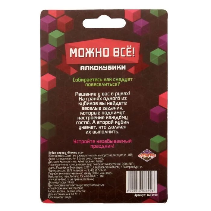 Купить кубик "можно все", алкокубики для принятия решений от 60 руб. с доставкой до пункта выдачи в Сочи. Интернет магазин ДекаМаркет. Оплата при получении.